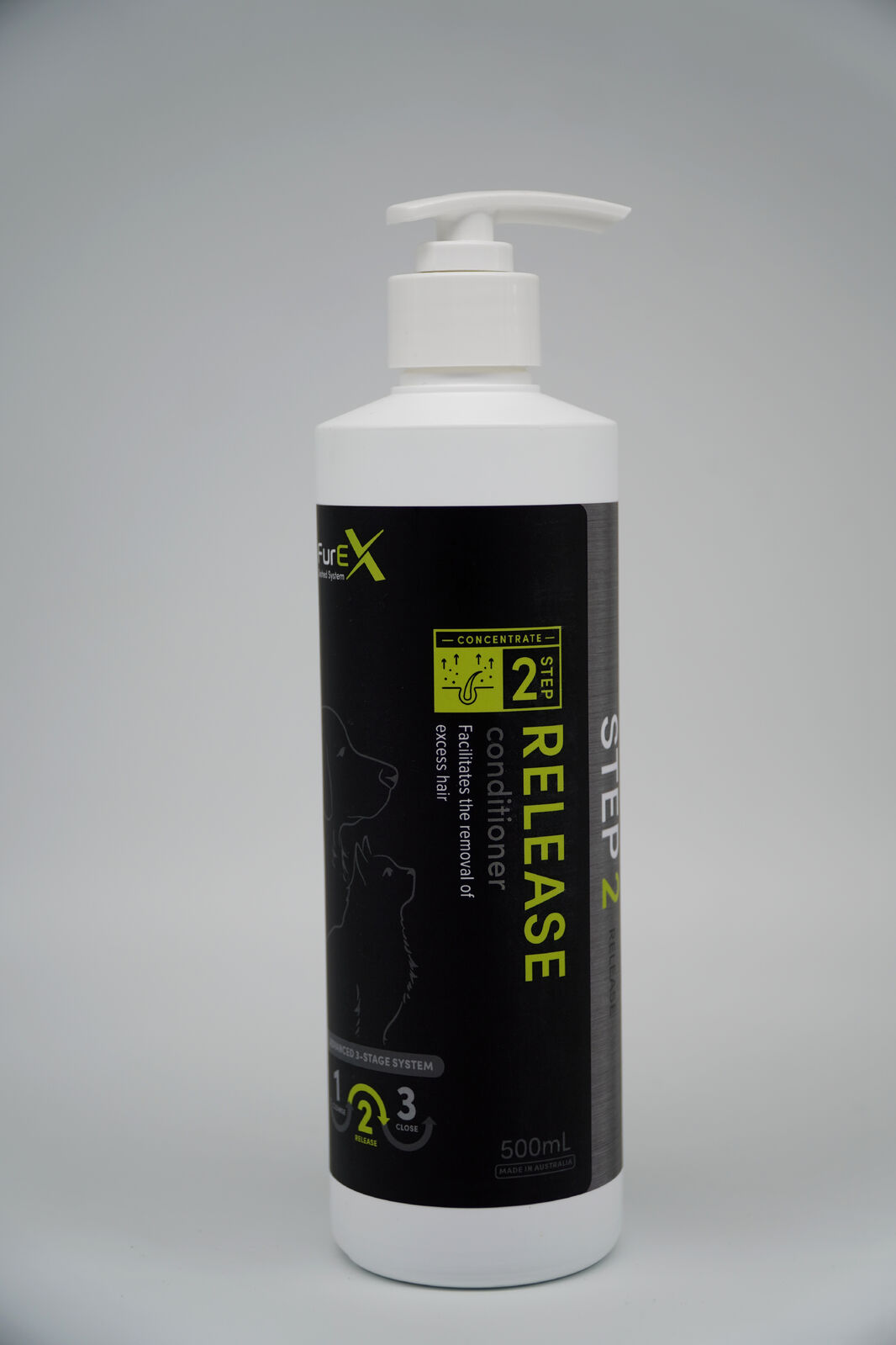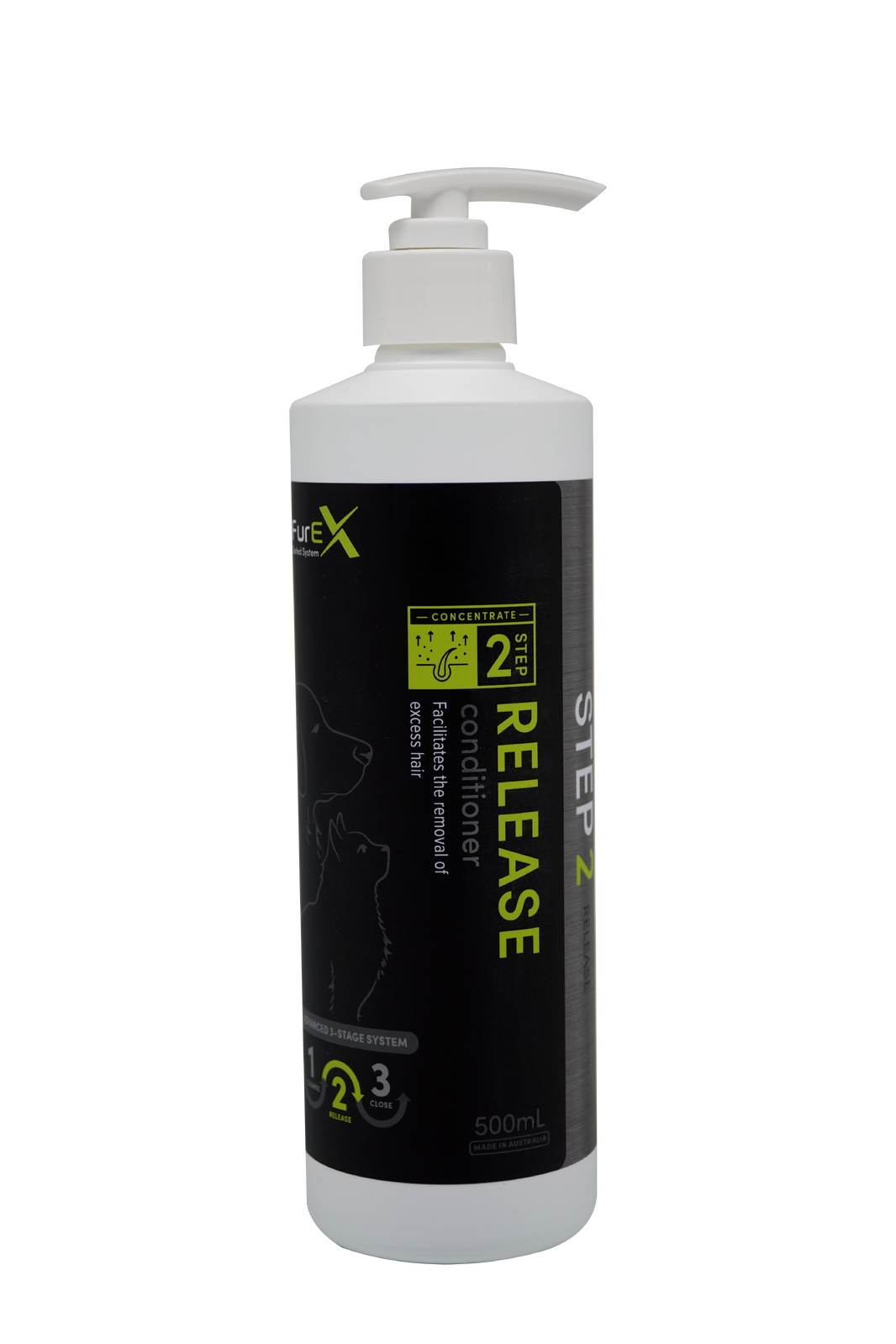 Release Conditioner Step 2 contains natural oils to and proteins to fill in the hair cuticle this advanced de shedding formula is a groomer's best friend. FurEx Release is specifically designed to facilitate the removal of old and shedded hair with little or no force.